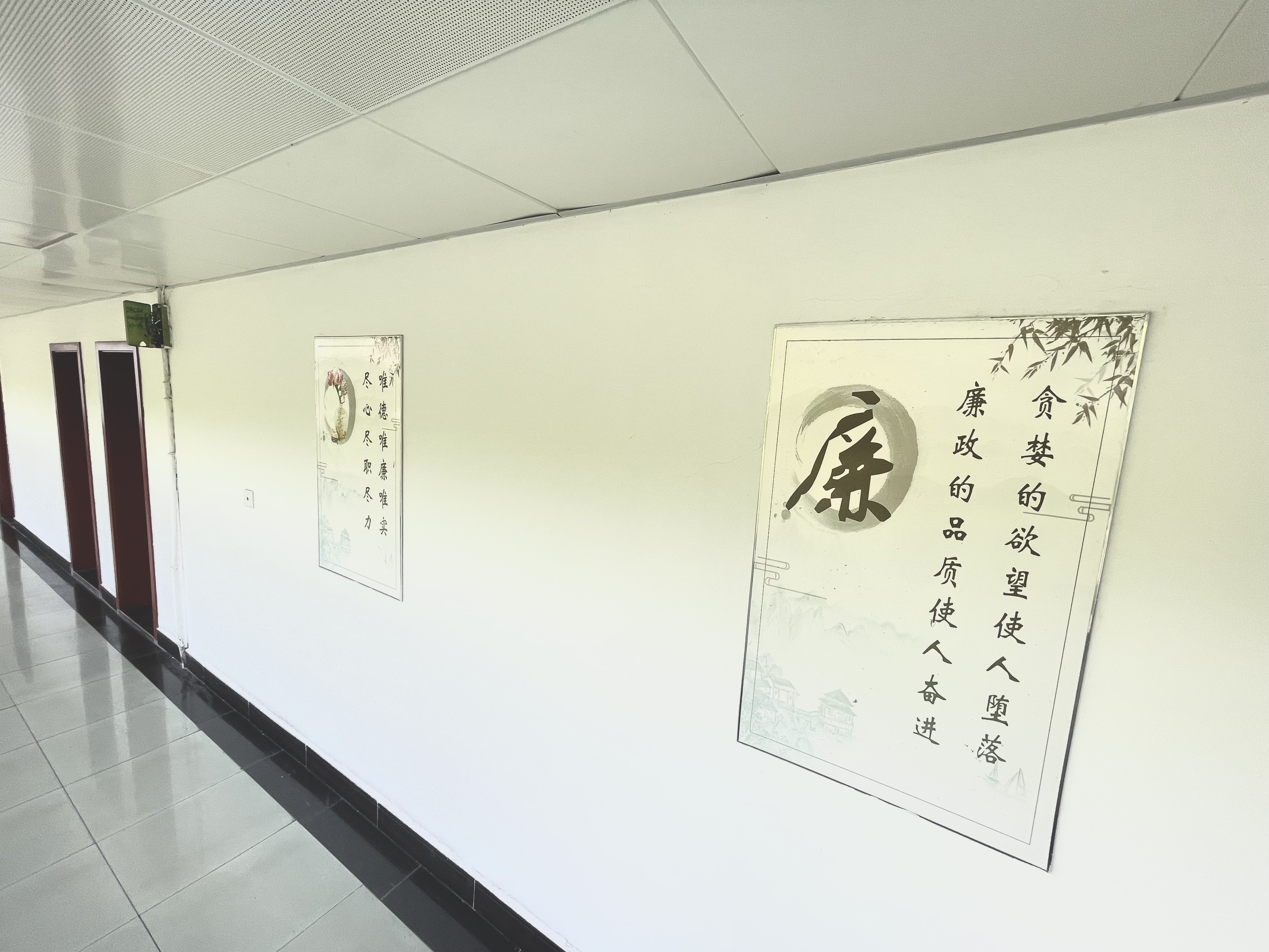 廉政文化墻是一道風景,讓全體黨員干部職工在欣賞圖文并茂廉政文化的同時,受到潛移默化的教育;廉政文化墻是一座警鐘,它時刻警醒著廣大黨員干部職工要嚴守職業(yè)操守,筑牢拒腐防變的思想道德防線。